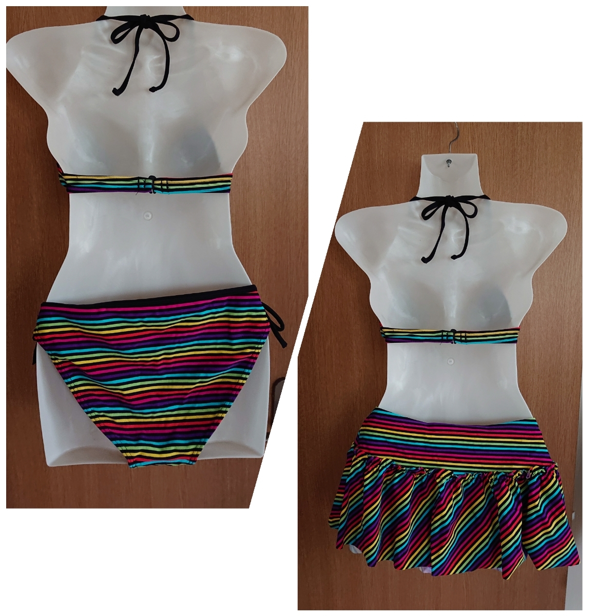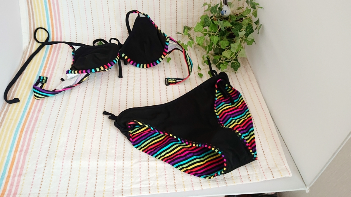 カラフルなボーダー柄ビキニ3点セットです