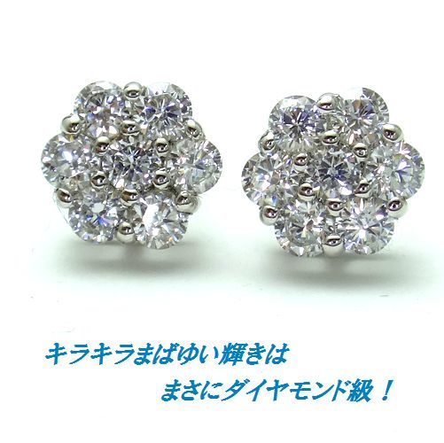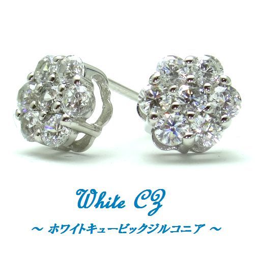 K10WG ホワイトCZ キュービック フラワーデザイン スタッドピアス ジュエリー ホワイトゴールド 花 マシンカット ジルコニア 箱付き
