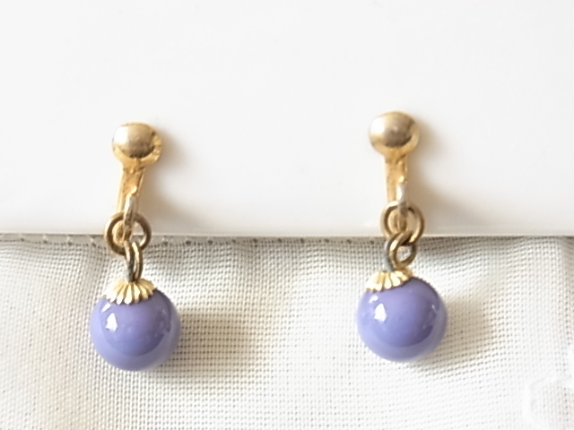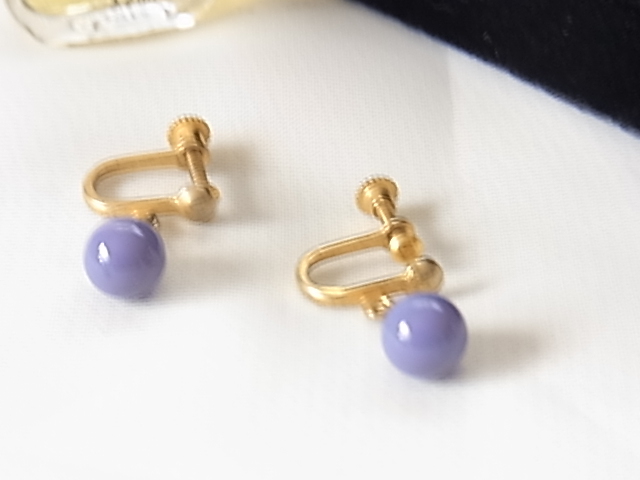 小粒のパープルブルー系のストーン調 シックで品のある印象のイヤリング★
