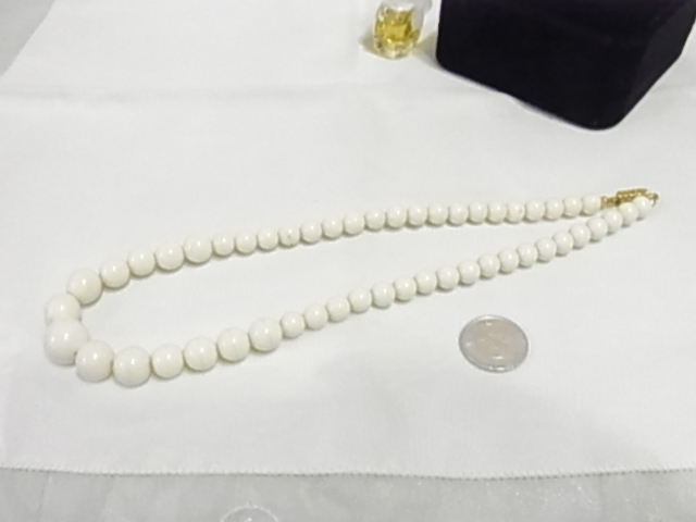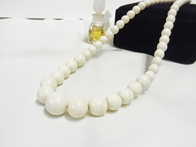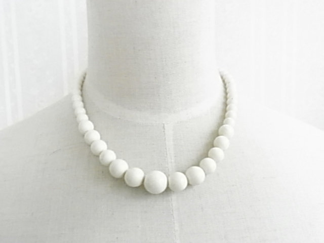 涼しげなアイボリーホワイト 大中小のボール玉 ネックレス◆