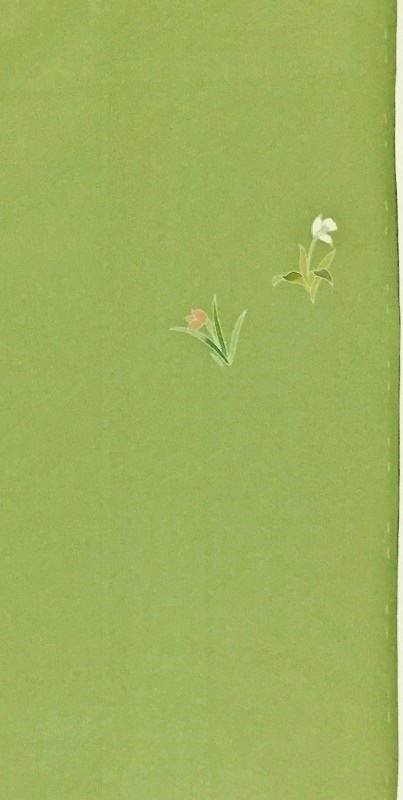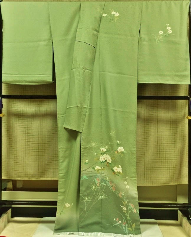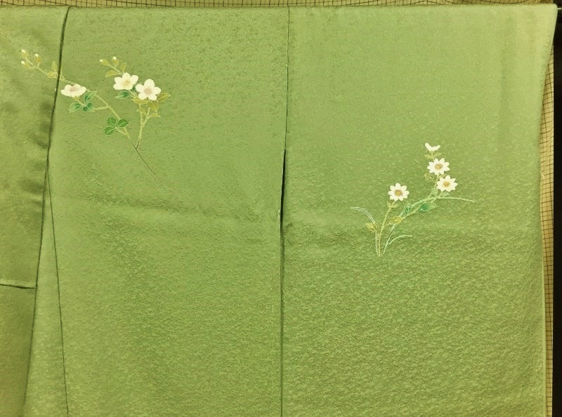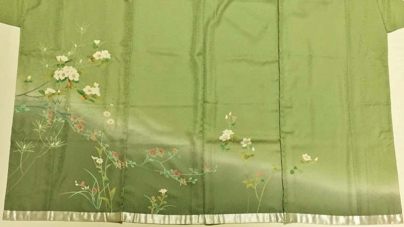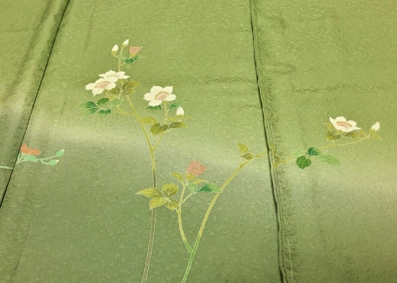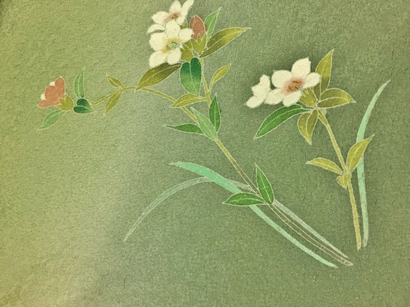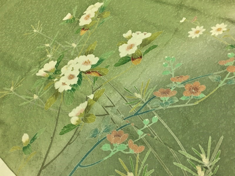 | 型友禅と手挿しの彩色で「草花」の友禅柄を置いた | ||