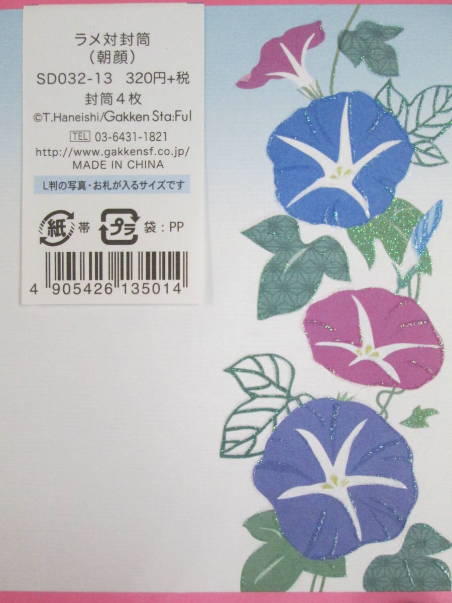夏柄ラメ対 封筒 (4枚入り) 夏の朝顔