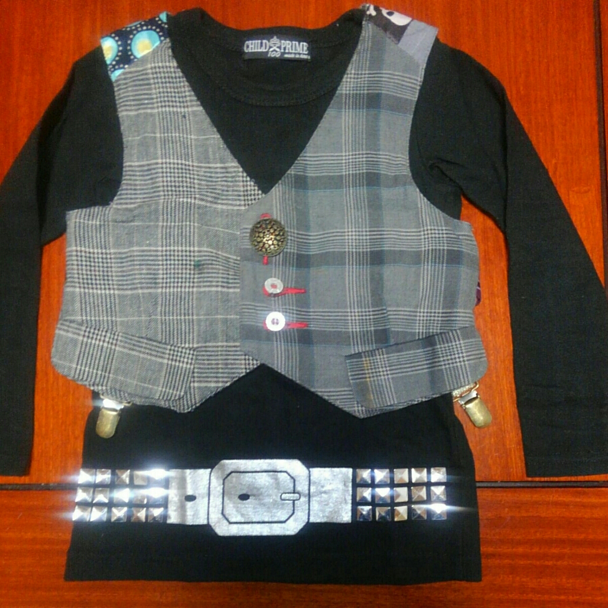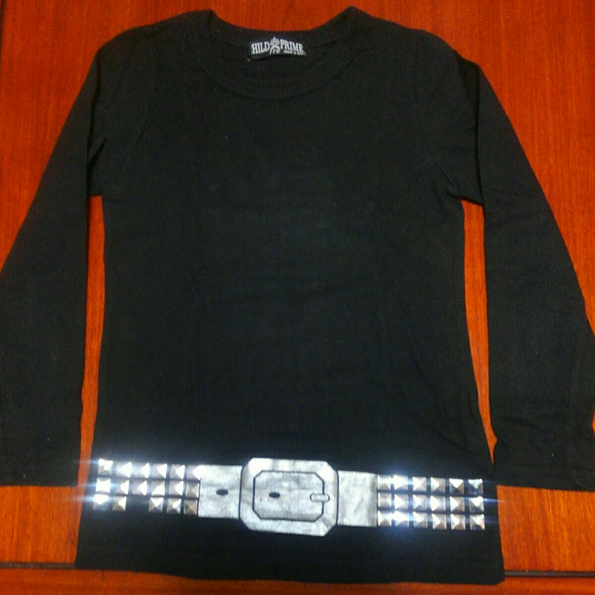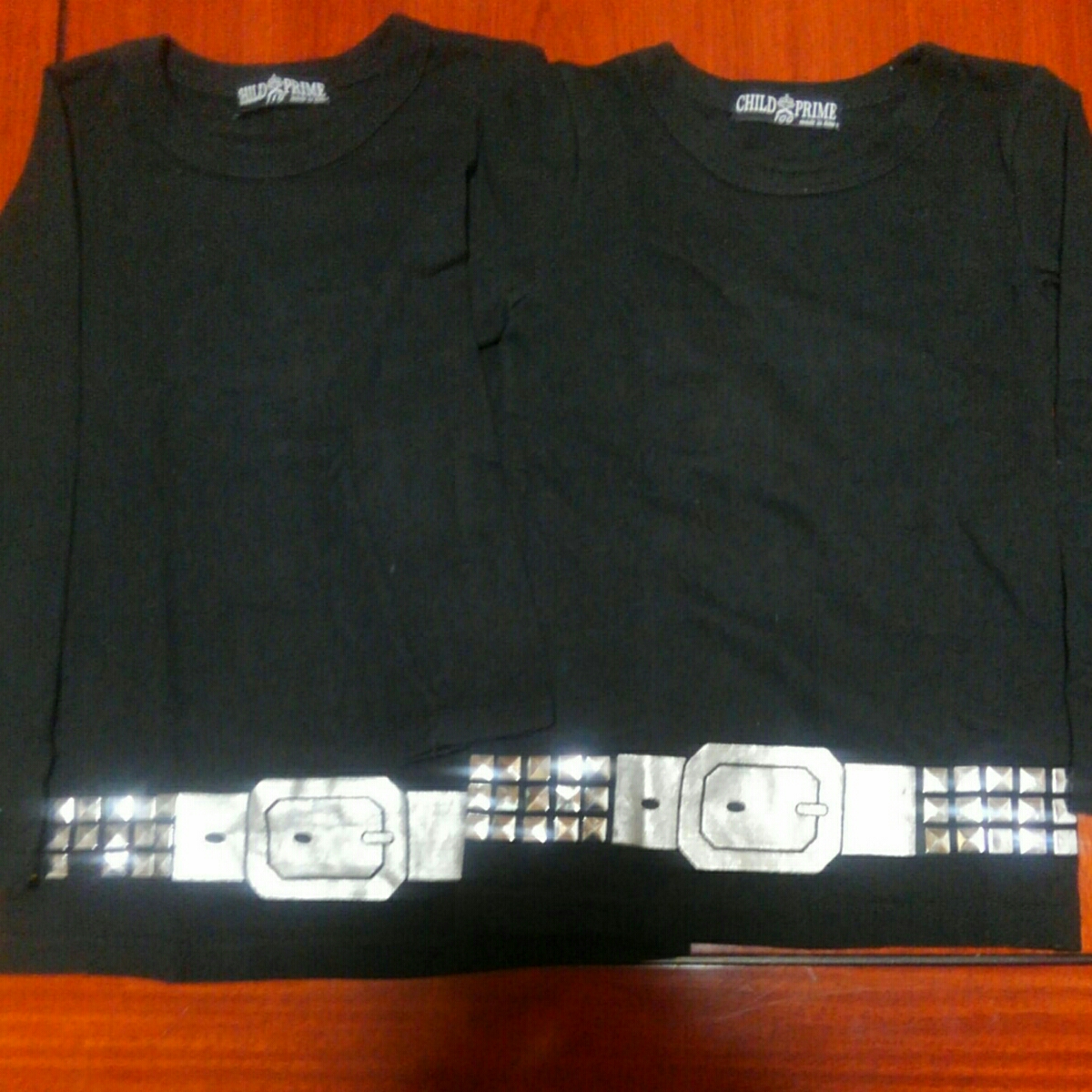 child prime 110㎝  ロンT 長袖シャツ 黒色 ベルト スタッズ付き 中古 難あり