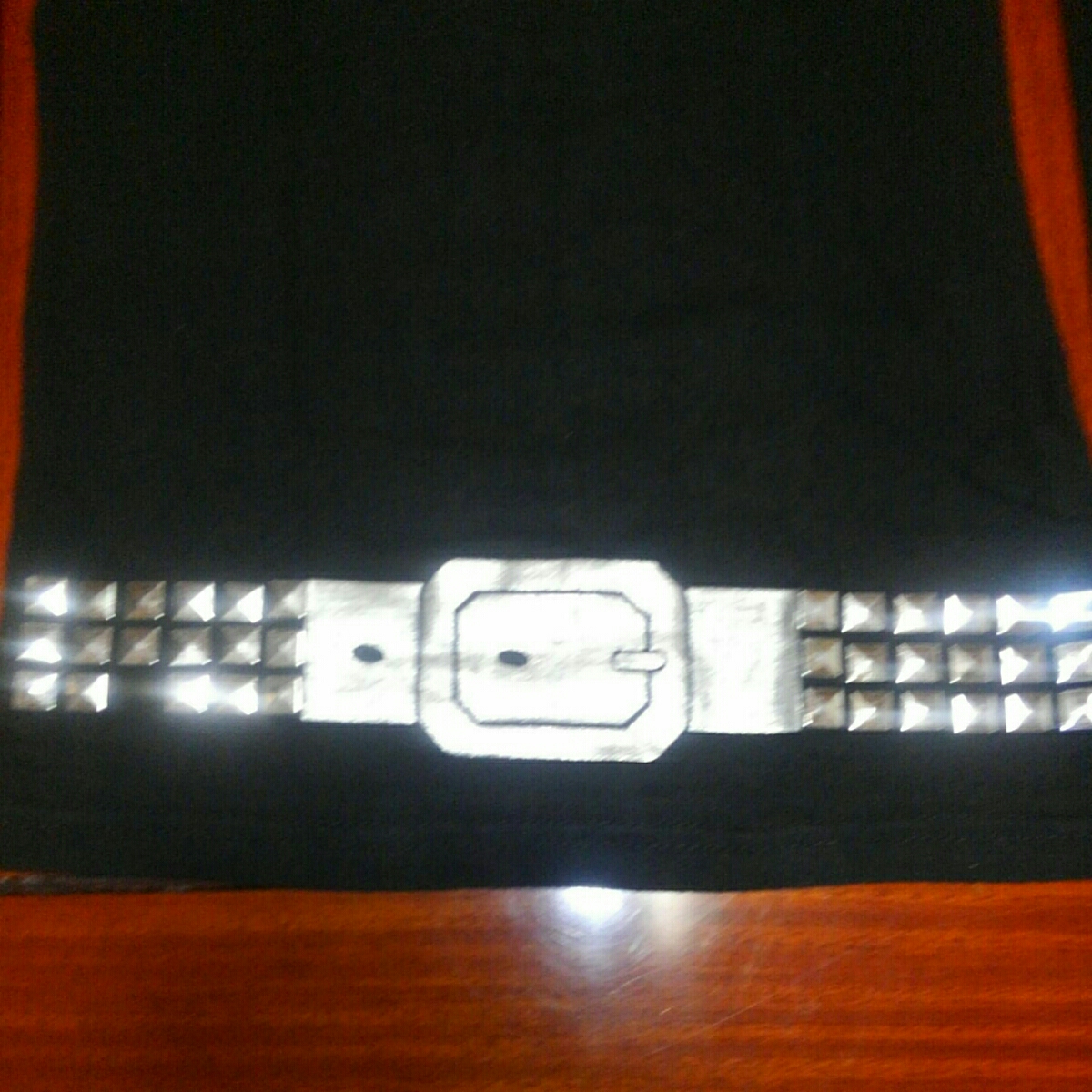 色は黒で、ベルト風のプリントとスタッズが付いてカッコいいです。