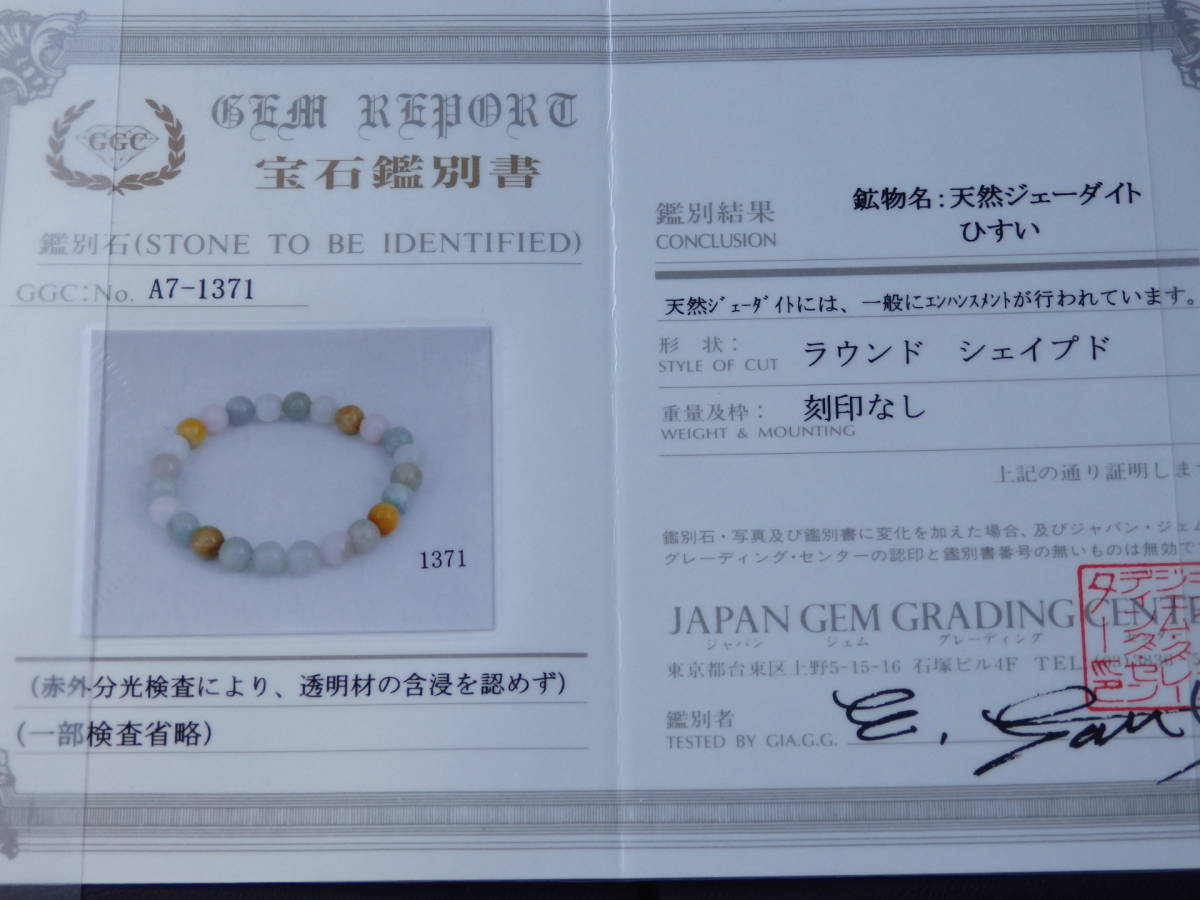 マルチカラー翡翠 自然色 鑑別書付