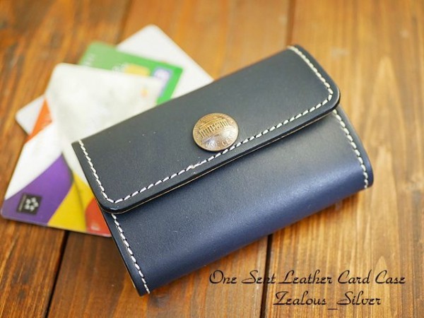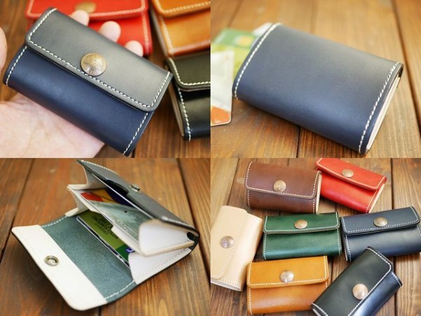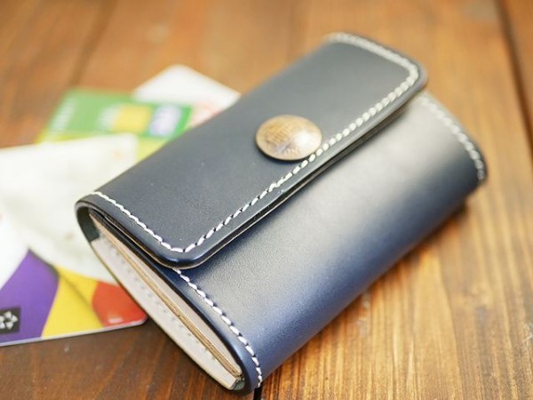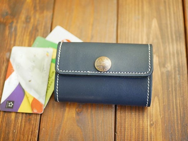 送料無料 1セント 3つ折りレザーカードケース ハンドメイド 本ヌメ lcc24 ネイビー