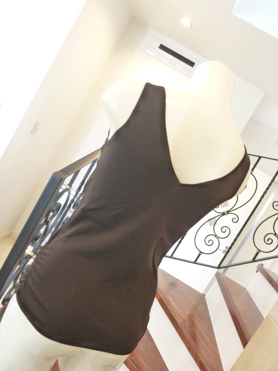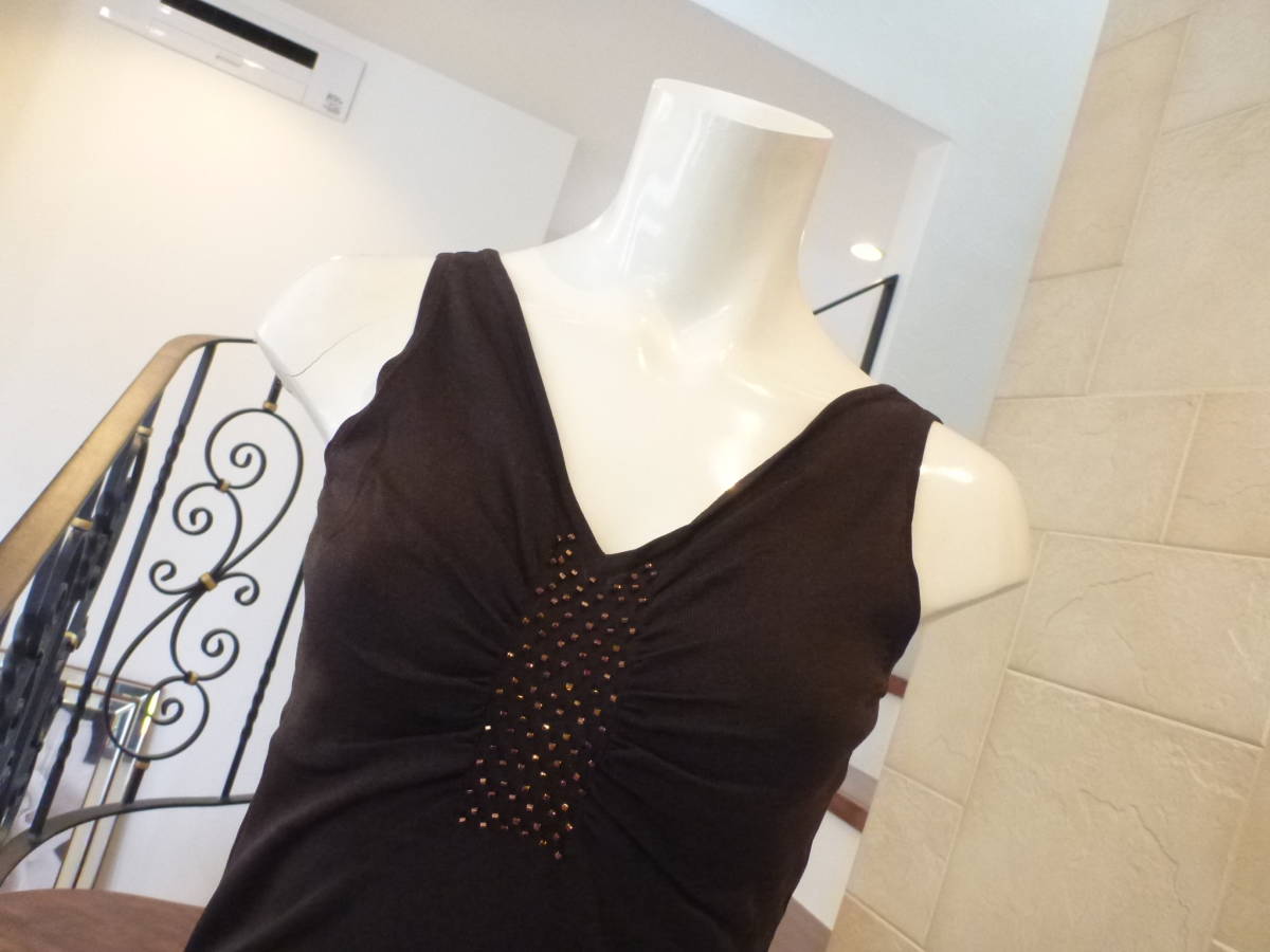 2.5万 美品 NOVESPAZIO ノーベスパジオ★茶ブラウン ビジュー サイドギャザー ノースリーブニット 38  M相当