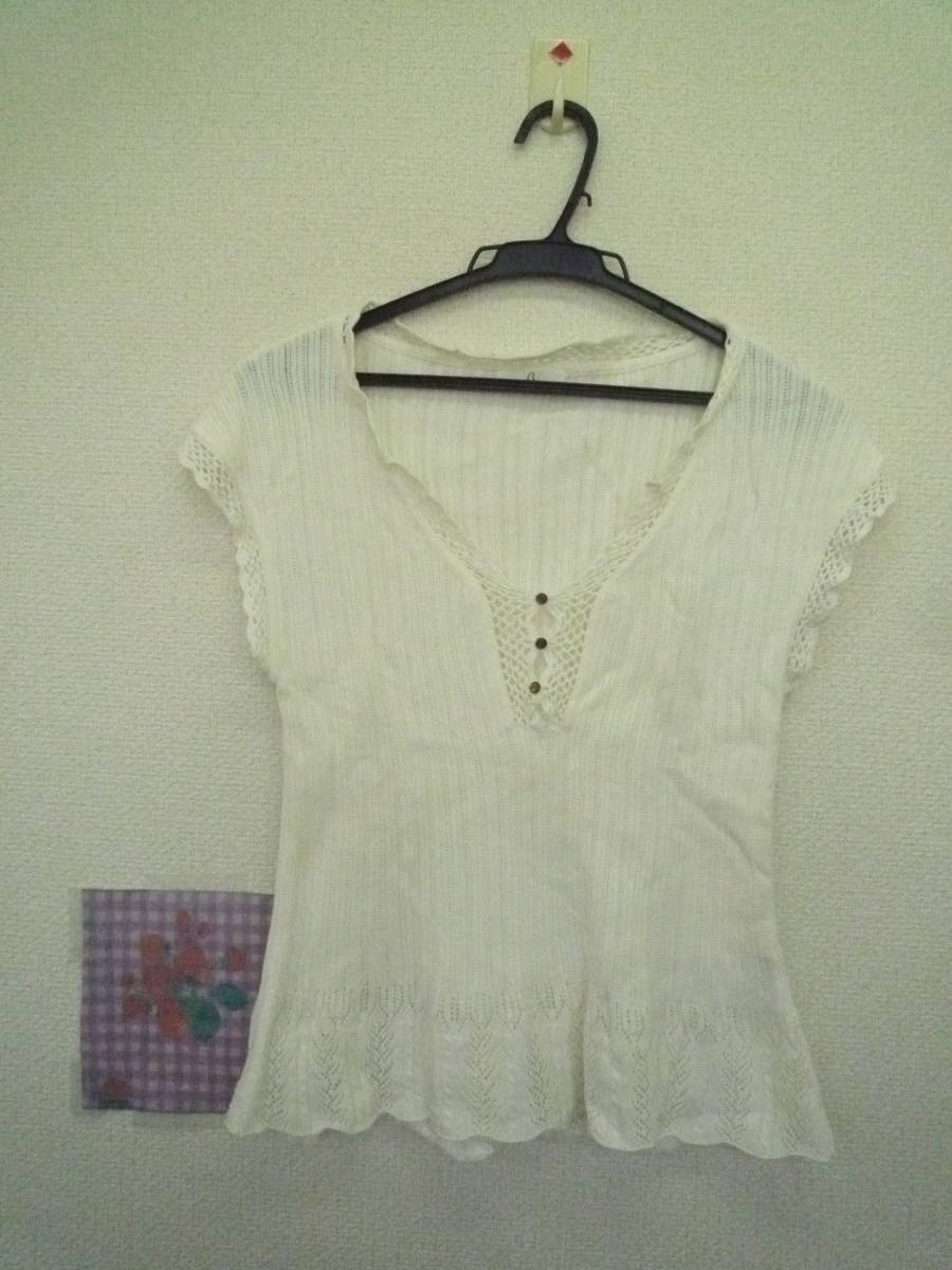 ★ 千趣会 ノースリーブ Vネック サマーニット トップス オフホワイト < L >