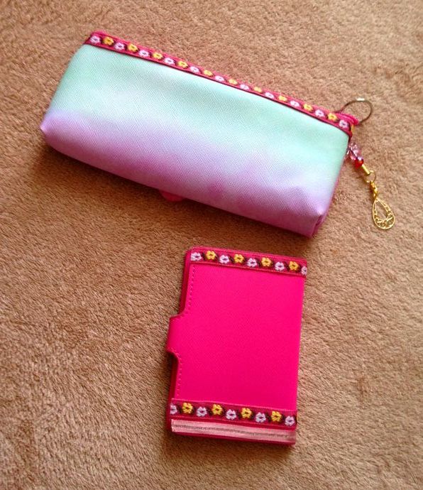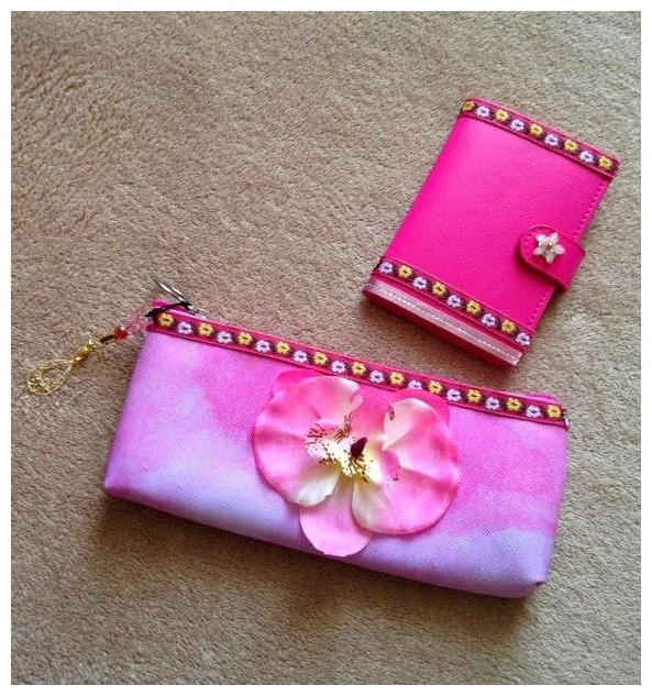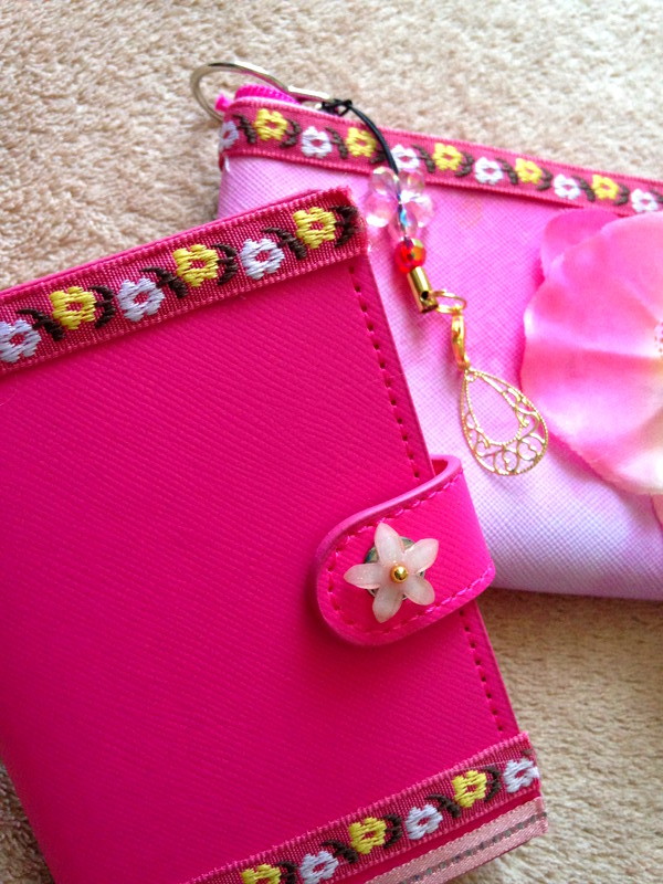 ハンドメイド◆フローラルデザイン◆取り外せるカバー メモ帳 ペンケース セット◆ピンク