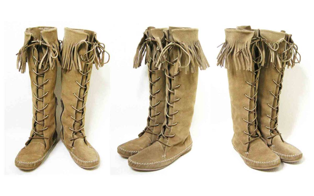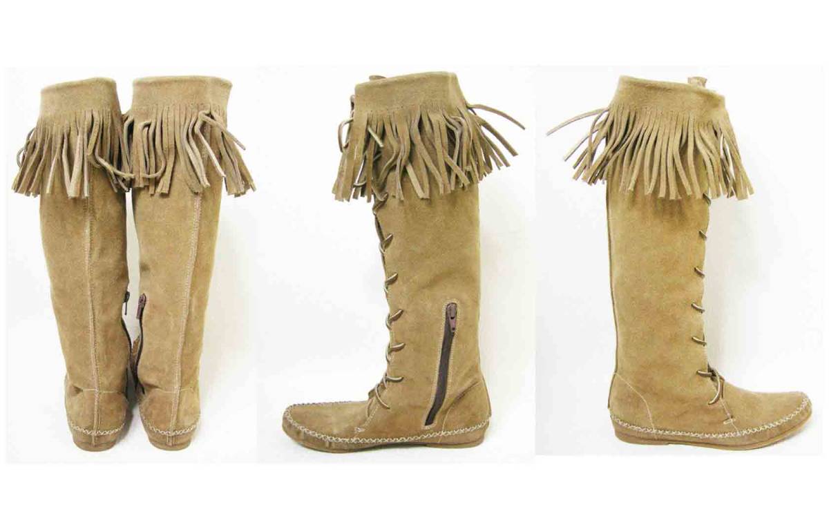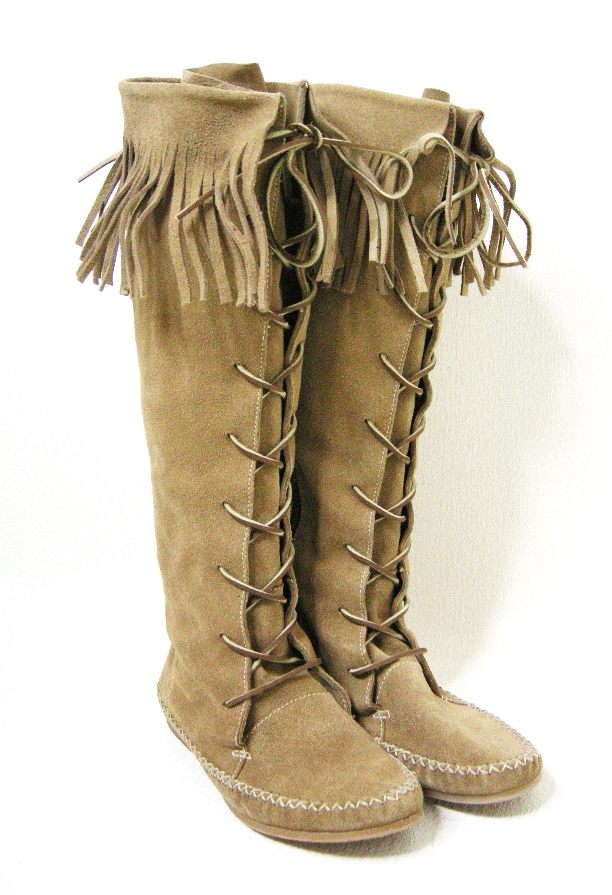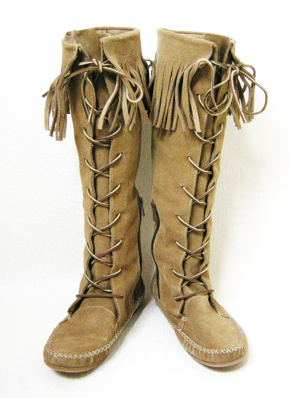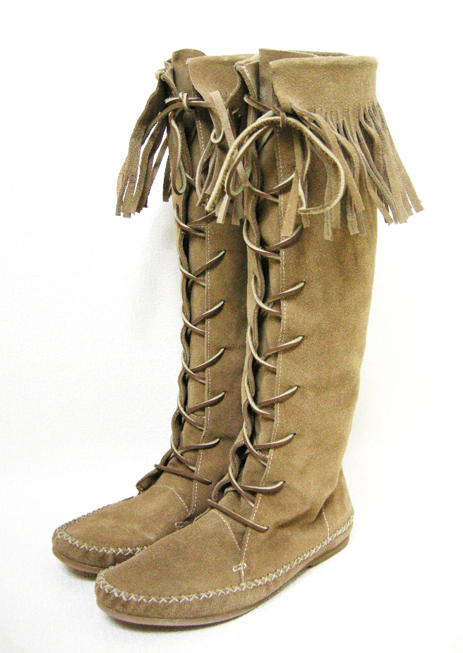 ■DIANA【ダイアナ】ベージュ フリンジ モカシン ロング ブーツ /37(23.5)■
