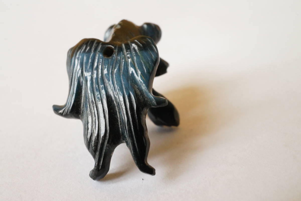 | 希少!30年前の原石を加工彫刻!極上天然紺虎目石 彫刻研磨高透明度石使用「金魚」12.5ct | |||||||||||