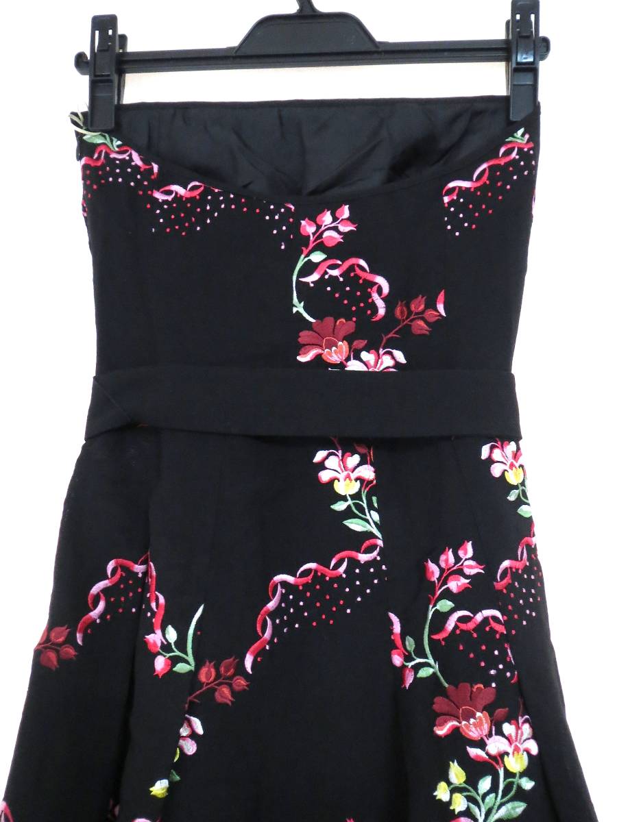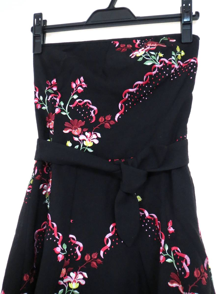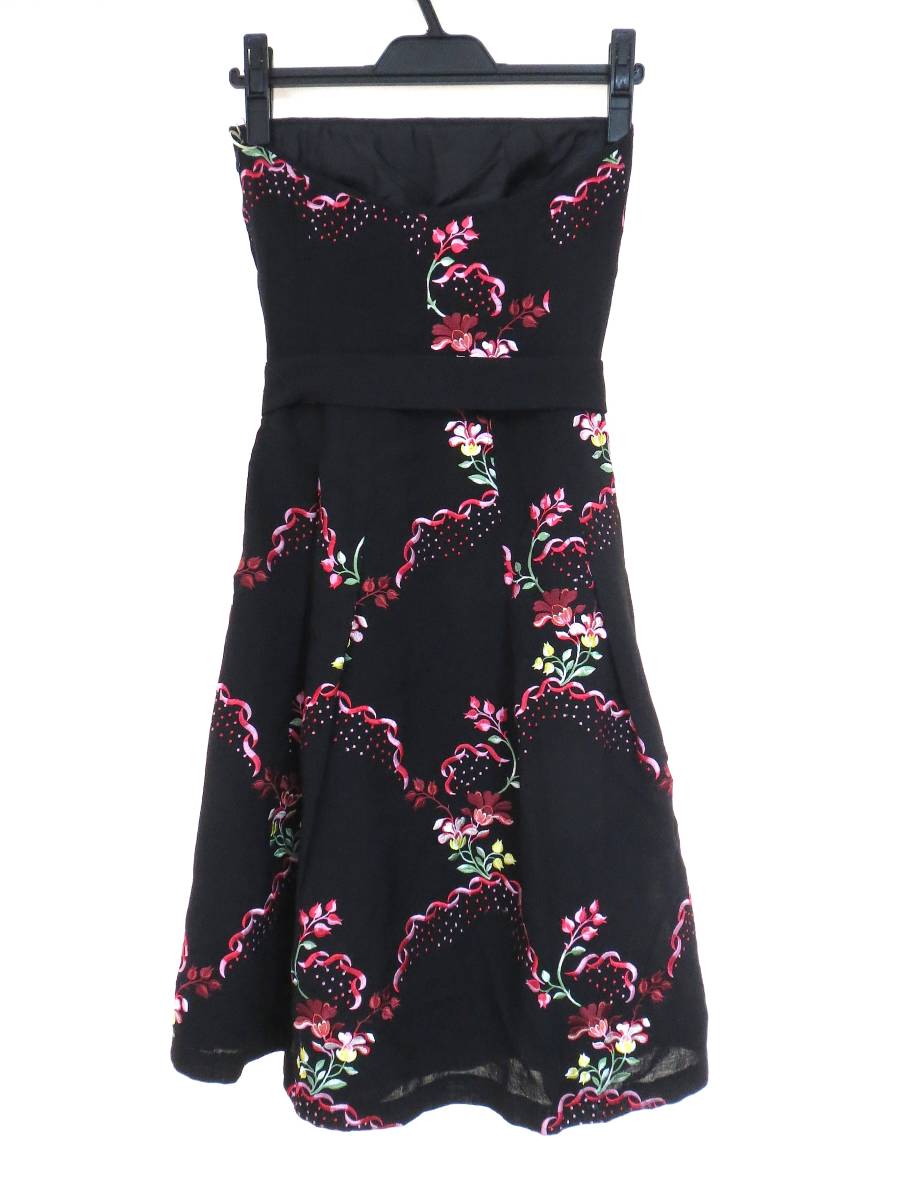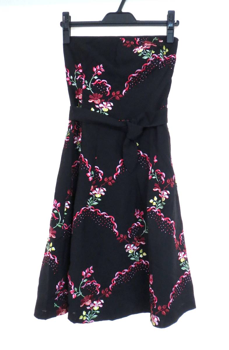 二点以上で送料無料! T130 TOCCA トッカ 黒 花柄 リボン付き ワンピース 0 スカート ひざ丈 コットン ブラック フラワー