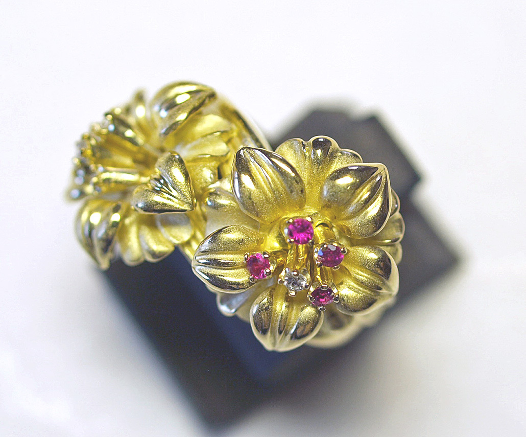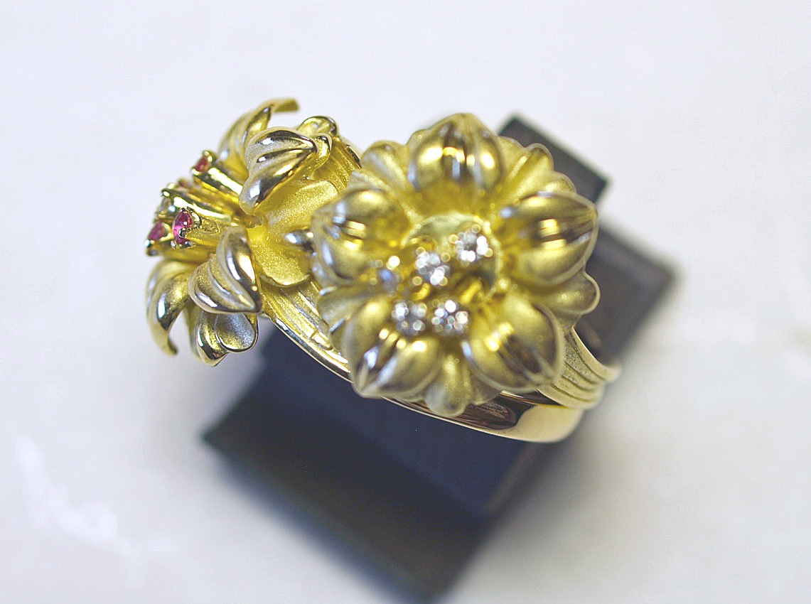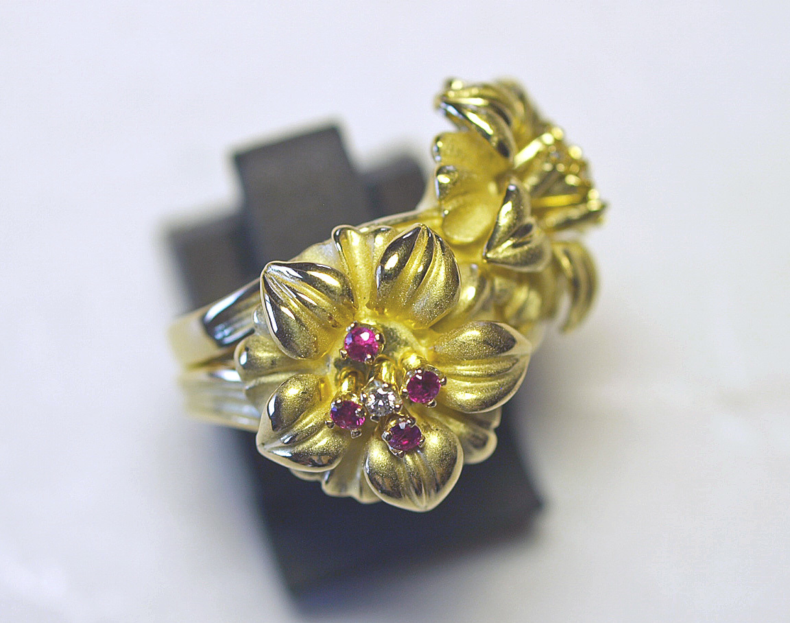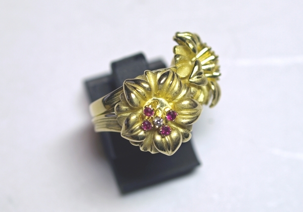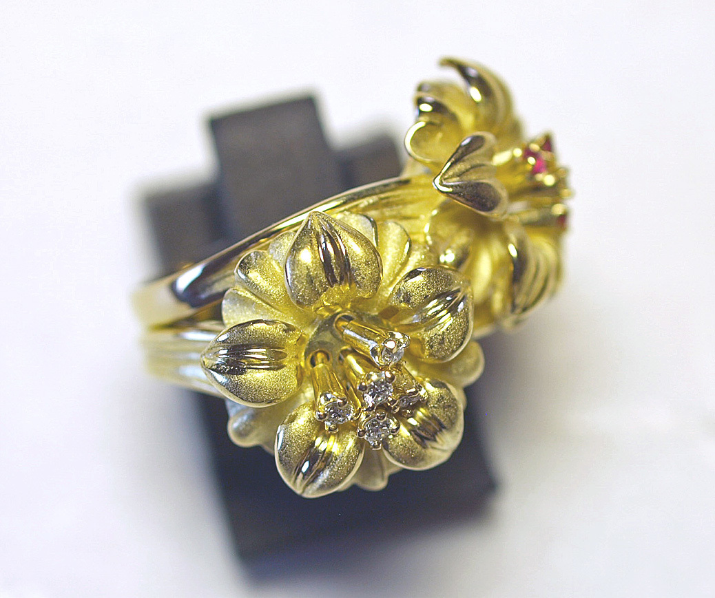 K18YGイエローゴールドアネモネのお花スウェーリングになります。