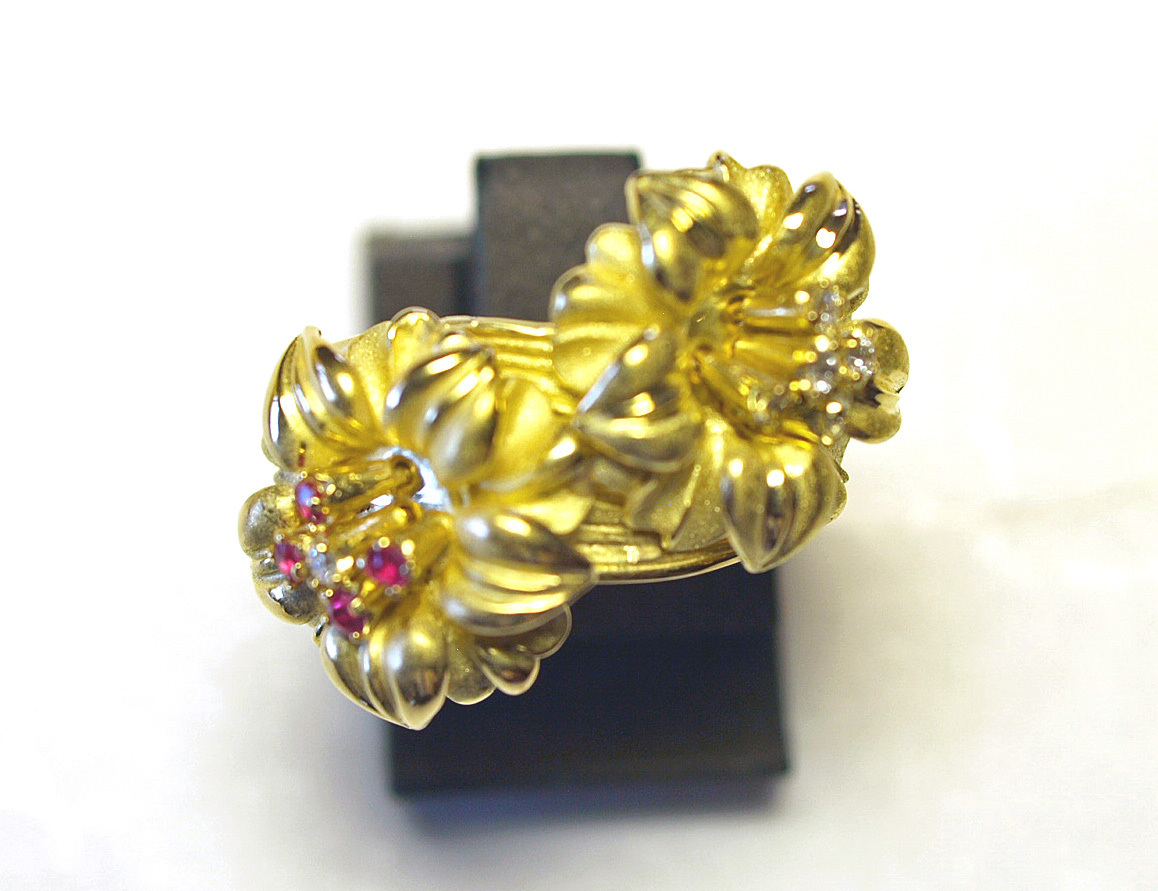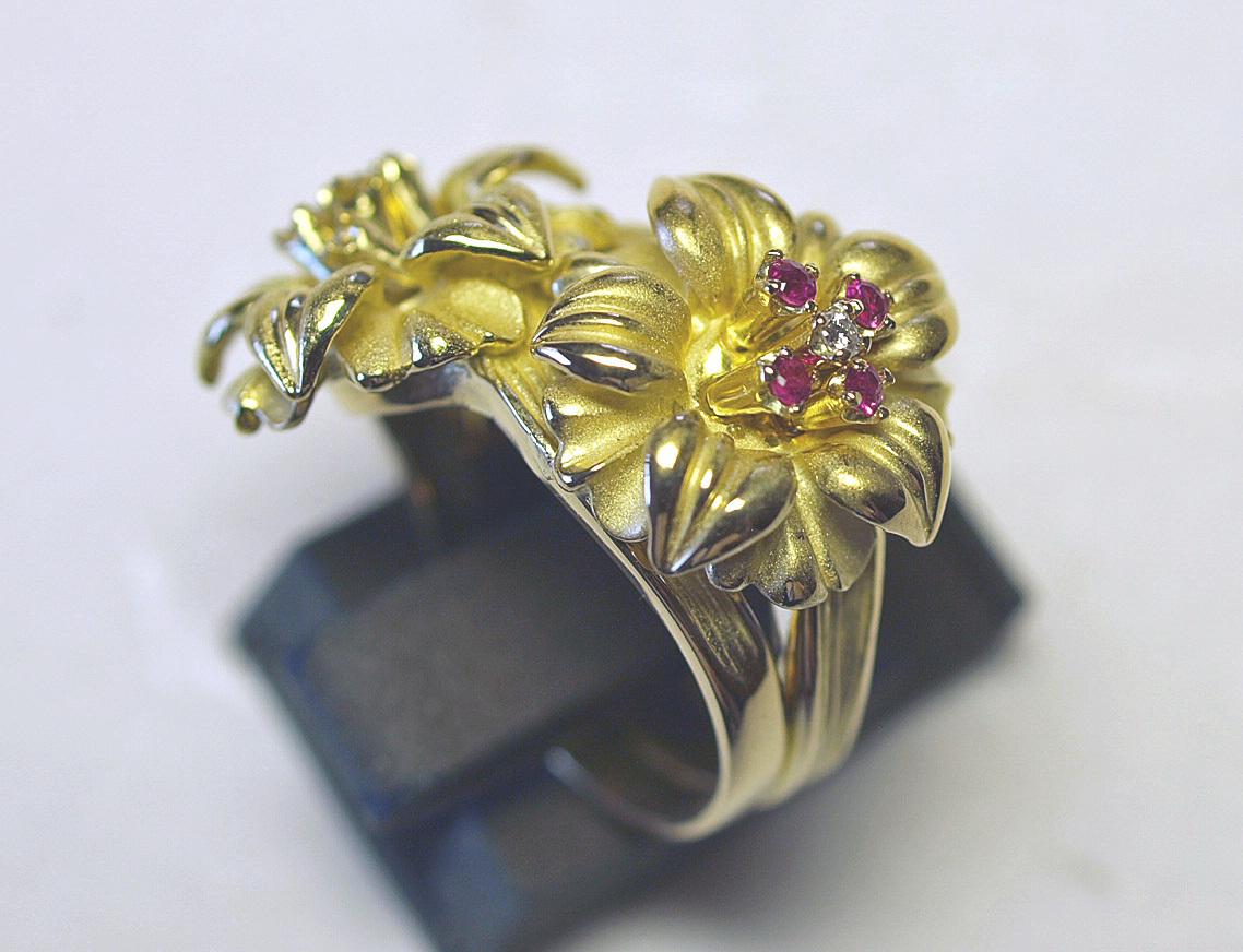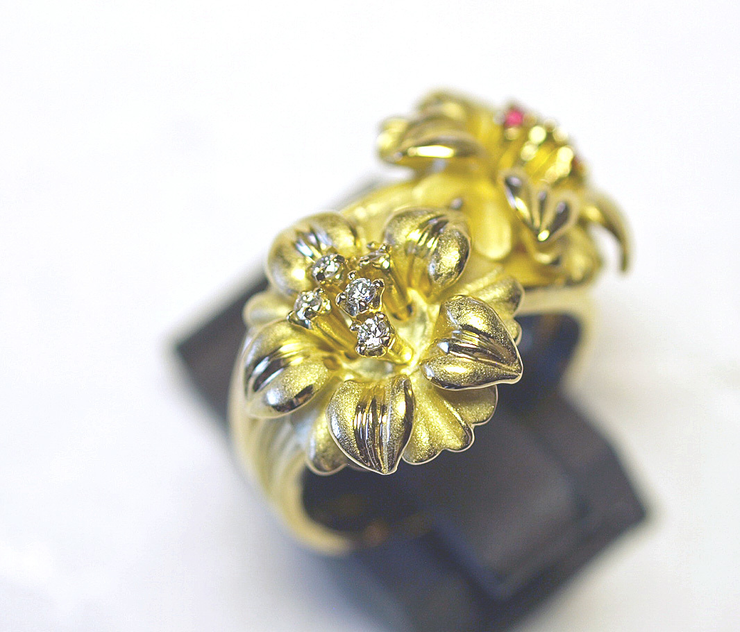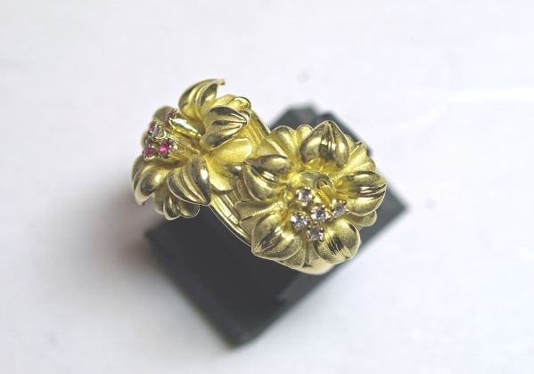 K18YGイエローゴールドアネモネのお花スウェーリングになります。