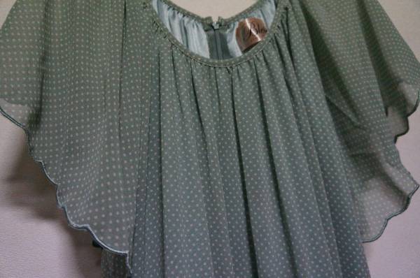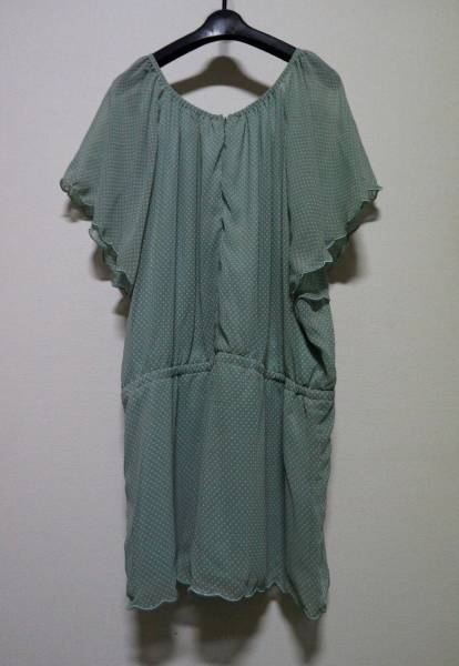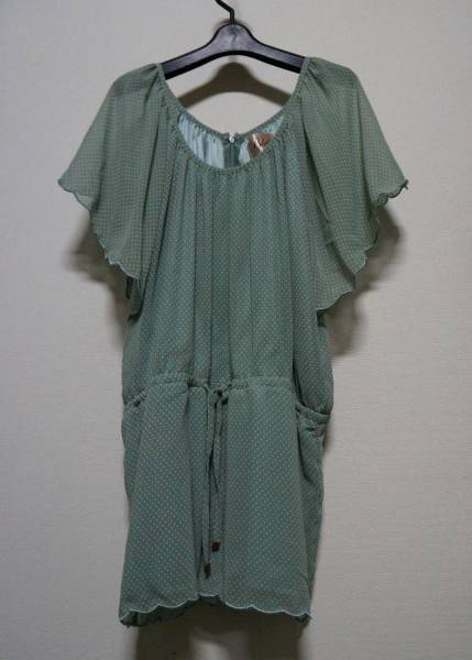 上品 透け感 ドット シフォン ワンピース グリーン F ロンパース