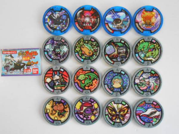 TVアニメに登場する人気妖怪メダル 1.オロチ キラ仕様 2.ツチノコ キラ仕様 3.ロボニャン キラ仕様 4.りゅーくん 5.コマさん レアな人気妖怪メダル (カプセルでしか手に入らない) 6.ブカッコウ 7.トーシロザメ 8.ふくろじじい 9.へこ鬼神 10.おつぼね様 11.サイコウ蝶 12.ハク 妖怪の必殺技をデザインしたメダル (カプセルでしか手に入らない) 13.影オロチ キラ仕様 14.メラメライオン キラ仕様 15.ベンケイ 16.クワガ大将 ◇妖怪メダルには、楽しい遊びが盛りだくさん! ニンテンドー3DS ゲームソフトと連動! 玩具と連動してなりきり遊び! |