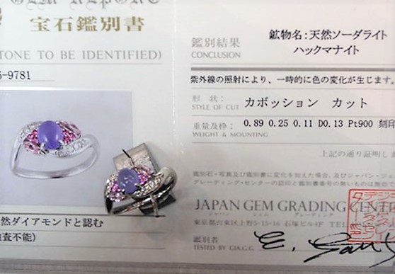 希少!天然【ハックマナイト】色変化!0.89c・Pt900・ダイヤ0.13・6.9g・消費税&送料込み・新品・未使用・本物