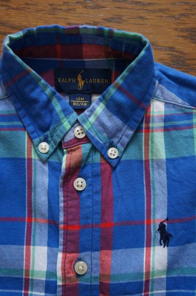*RALPH  LAUREN    ラルフロ-レン  長袖シャツ   12M     です。3枚目の写真にありますように、汚れがあります。畳ジワ・毛羽立ちが多少あります。