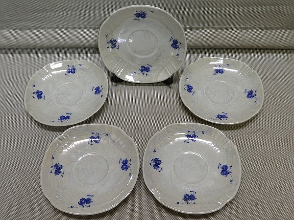 ●●●昭和レトロ KEINAN CHINA ブルーローズ薔薇 ラスター ソーサーのみ5枚●●●