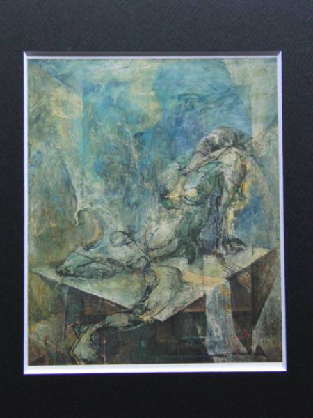超希少画集の一頁を、新品額にて額装致しました。年代ものの画集ですが、保存状態が良好だったため、絵画部分の状態は綺麗です。版上サイン入り。