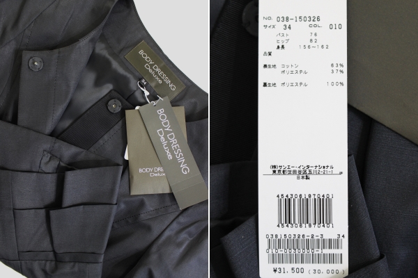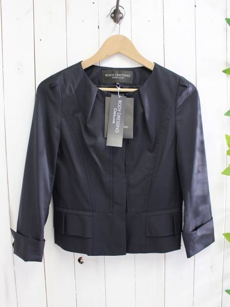 定価30,000円 新品*BODY DRESSING Deluxe ボディドレッシングデラックス*サイドプリーツ タックノーカラージャケット 34(XS)