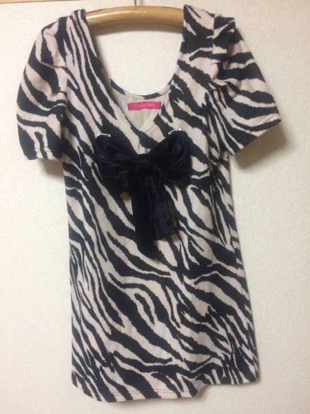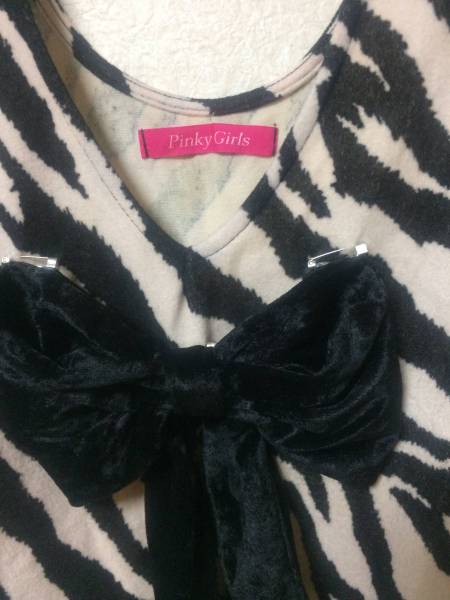 ピンキーガール ゼブラ柄 リボンワンピースM