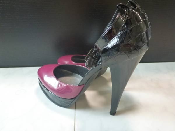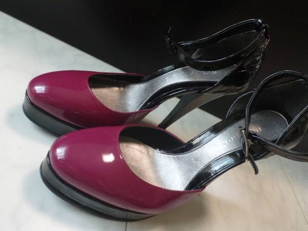 3万★NOVESPAZIO ノーベスパジオ★ 黒×紫系 本革エナメル パンプス サンダル 23