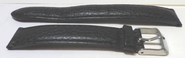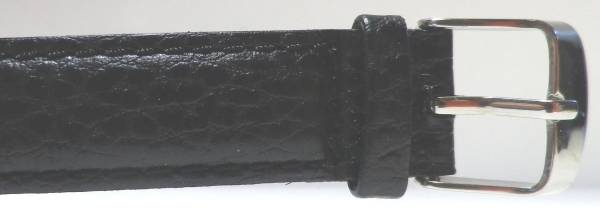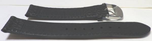 未使用の牛革替えベルトです。牛革の中でも最高級なカーフレーザ(子牛の革)製です表面はトカゲ風の型押しの仕上げとなっています。色はブラック(黒色)です。尾錠は大型でシルバーです。ベルトは在庫品となります。裏地は耐汗素材です。レザー(GENUINE Calf)の刻印あり。新品の16mmばね棒(1組2本)付きとなります。
