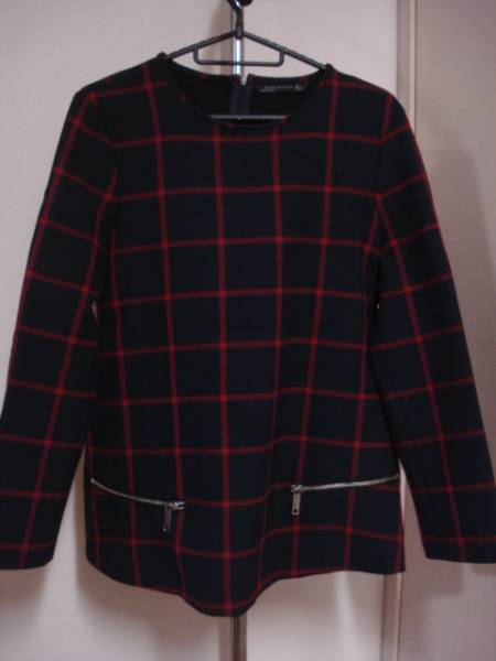 格安ガーリー可愛い・ZARA(ザラ)・紺系地×赤系ラインの綺麗な格子柄・お洒落な高級プルオーバーアウター系 Mになります。