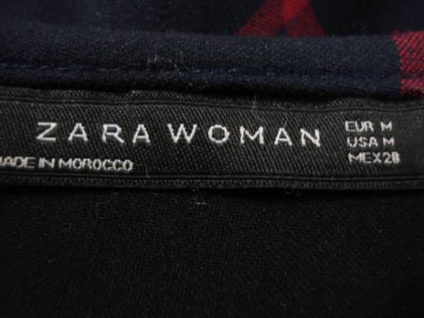 人気ブランド ZARA(ザラ) の紺系地×赤系ラインの綺麗な格子柄・お洒落な高級プルオーバーアウター系タイプのお洒落でガーリーなお品です。