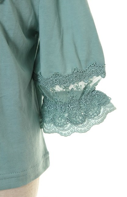 コットンレースを組み合わせた七分袖インナー。