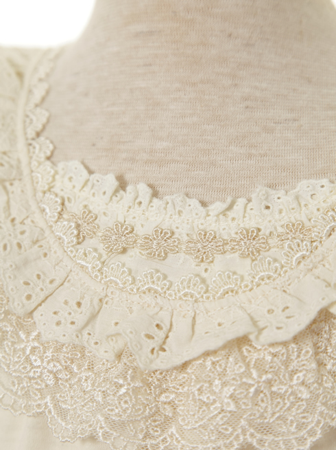 袖口は透け感あるレース&コットンレース。