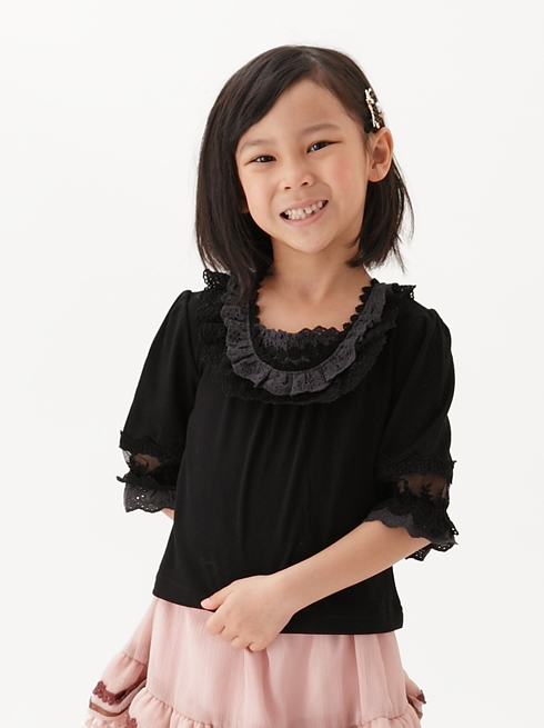 347◇コットンレース付インナープルオーバー 130cm 黒 ブラック axes femme kids アクシーズ ファム キッズ TS11X18K