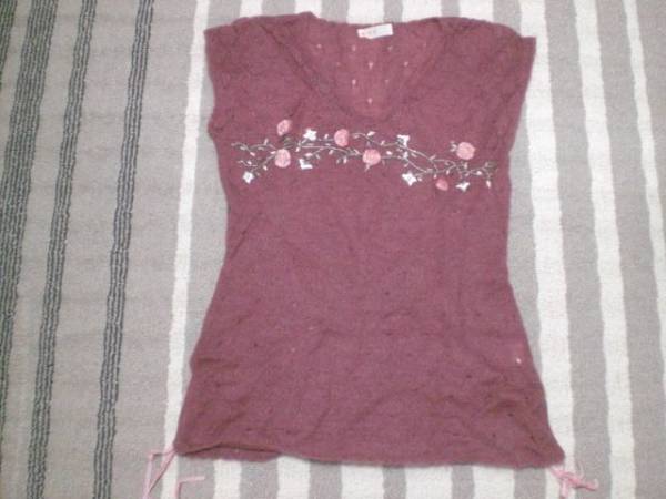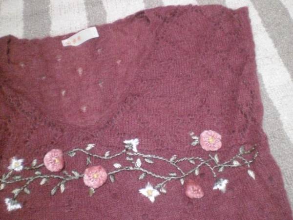 G)フェリシモ 花刺繍がかわいいふんわりモヘアベスト M