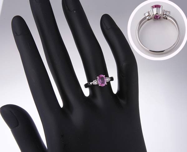 Pt900製のピンクサファイアとダイヤモンドの12号リングです。