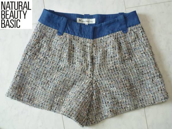 美品 NATURAL BEAUTY BASIC|ナチュラルビューティーベーシック ツイード生地 ショートパンツ M