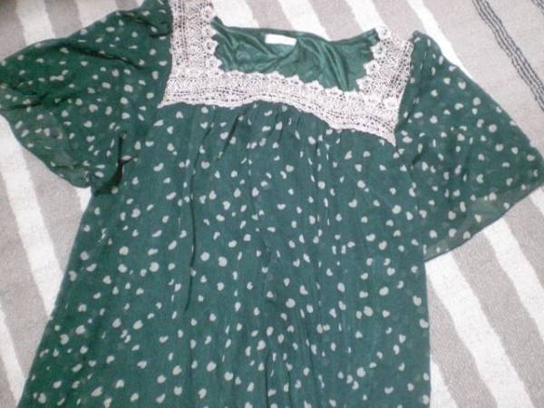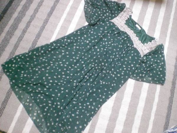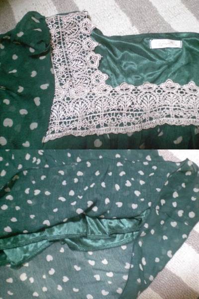 H)Fiagau 胸元レース ハート柄中ニック/M/グリーン