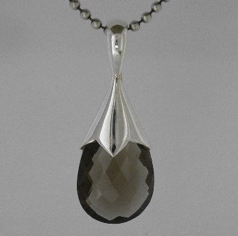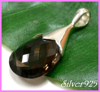 シルバー925銀の天然石スモーキークォーツ[多面カット]ティアドロップ ペンダント