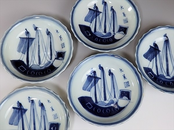 ★華心★ JJn-B988 古伊万里 染付 船の図 小皿 5枚