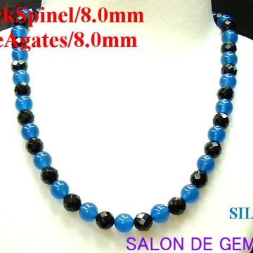 【新品】【上質】【SV:高級天然ブラックスピネル/天然青メノウデザインネックレス】【S8.0mm/A8.0mm】(長さ:約42.5cm)【エレガント】【高級クラブ使用】【現品お届け】【赤字大処分】【収納化粧箱付】【製作元オークション】【ラッピング無料】