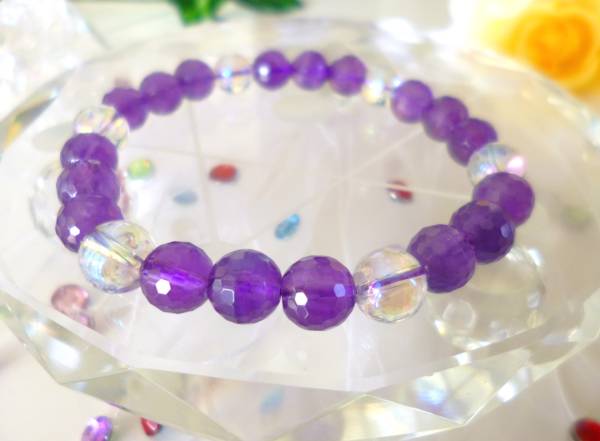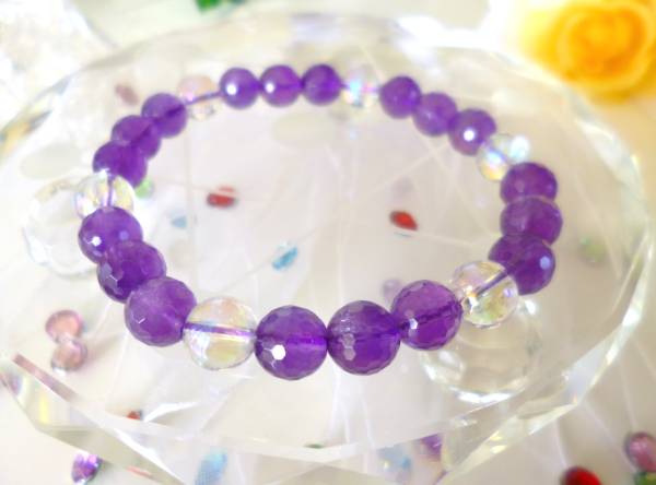 ★2月の誕生石★高次元チャクラ★愛の守護石★穏やかなる波動★高品質AAA★128面ミラーカット☆アメジスト★レインボーオーラ♪