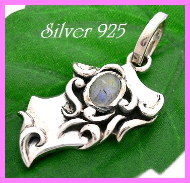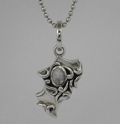 シルバー925銀の天然石ムーンストーン付トライバル エッジ ペンダント