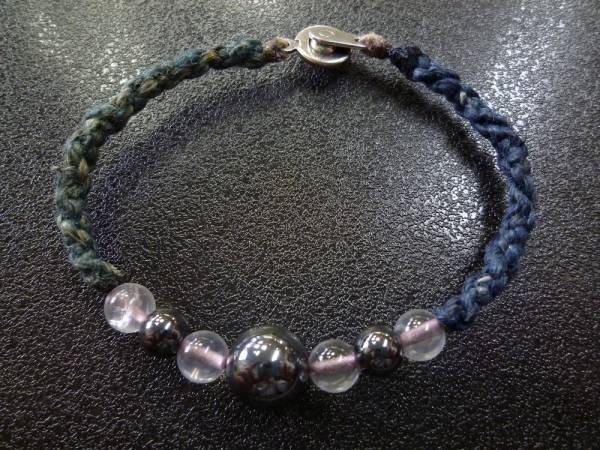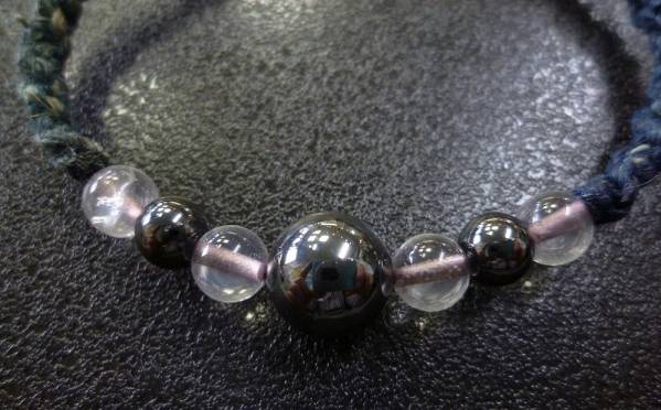 ヘマタイト、ミルキークォーツ 手編み ブレスレット