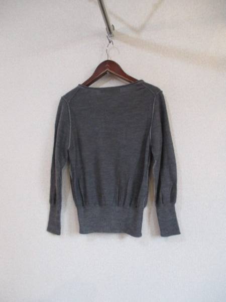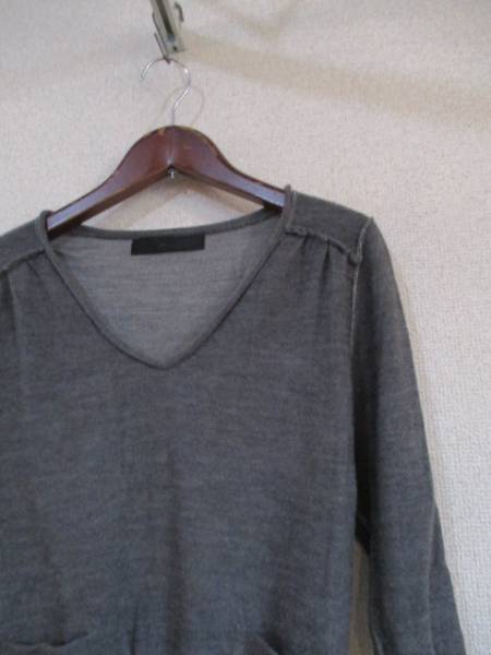 | 商品紹介 | グレーのVネックニットです。 本体部分は本来裏側になるほうを表に使っていて、 縫い合わせ部分も裏にする部分を表にしたデザインです。 襟周りは切りっ放しでくるんと丸まる形になっています。 《素材》 ウール100% |