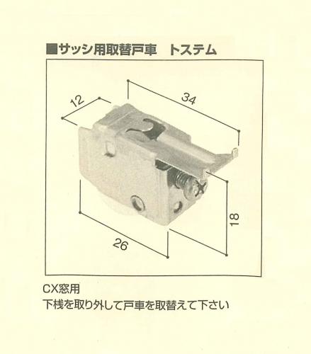 この戸車の旧トステムの型番はFNMS042です。この戸車の交換用としてご使用下さい。