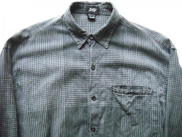 ご覧いただきありがとうございます。タイトルには検索用語も含みます。7・80年代ごろのコットンシャツです。タグからしてUSブランドがインドで製造したものかとおもわれます。インド綿ぽくとてもソフトな肌触り。細いラインが縦横に不規則に入っているので一見パッチワーク風にも見え、日本の野良着、襤褸好きにもお勧めの和柄ぽいかんじもあります。色:黒(褪せたかんじが雰囲気ございます)。一般的な外付けではない胸ポケット、内側脇の巻き縫い処理など細部にこだわりあり。小ぶりなエリでサイズも小さめ日本人向け希少なゴールデンサイズです。サイズ:S(~Mくらい)。実寸:肩幅46身幅48袖丈56着丈68(cm/素人採寸)。素材:コットン100%。振込:セブン銀行(どこの銀行からも振り込めます)ヤフー簡単決済。発送:定形外、ゆうパック。お手数ですが取引詳細(発送、振込など)がありますので入札前に自己紹介を必ずご覧 ください。着用感ありますが致命的ダメージなくビンテージとして良好です(こちら私物ではありませんが当方ペットなし無煙者)。中古品として一般常識の範囲内のものを出品して おります。コンディションの詳細などにこだわる方は事前に質問ください。新品同様のものを求める方、神経質なマニアの方は入札をご遠慮くださいませ。中古ゆえノークレームノーリターンとなりますが、詳細はお気軽に ご質問ください。*他にも同系を出品中です。