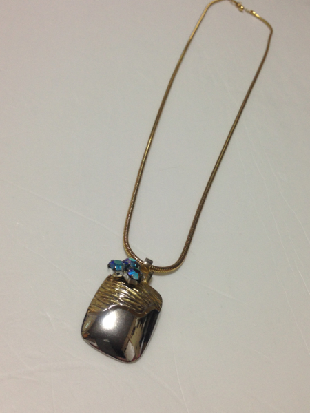 ガラス玉を使われている、モダンなペンダントネックレスです、トップのサイズは25×40ミリで長さは75センチのスネークチェーンが使われています★