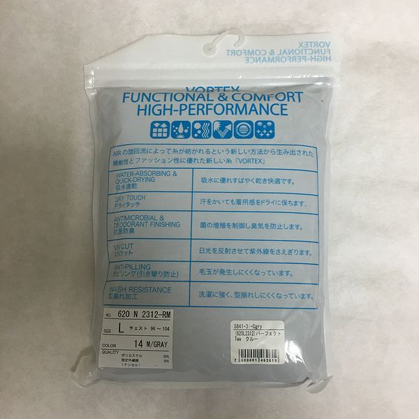 6つの機能を持つムラテック製品の機能糸「ボルテックス」を使用したシンプルな無地クルーネックTシャツ。