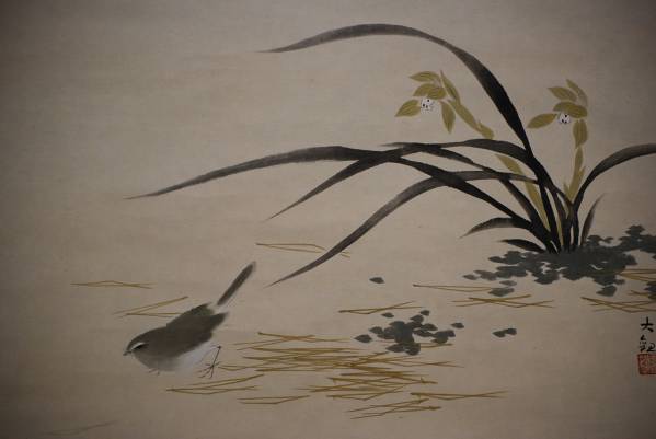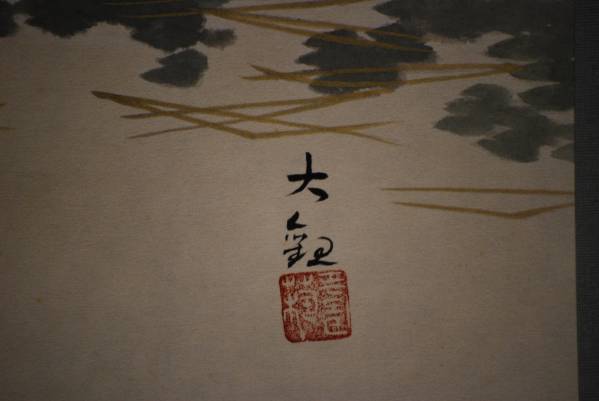 【複製】/横山大観/蘭に鴬図/工芸/【参考】 横山 大観(よこやま たいかん、正字体:大觀、1868年11月2日(明治元年9月18日) - 1958年(昭和33年)2月26日)は、日本の美術家、日本画家。常陸国水戸(現在の茨城県水戸市下市)出身。近代日本画壇の巨匠であり、今日「朦朧体(もうろうたい)」と呼ばれる、線描を抑えた独特の没線描法を確立した。帝国美術院会員。第1回文化勲章受章。死後、正三位勲一等旭日大綬章を追贈された。茨城県名誉県民。東京都台東区名誉区民。本名、横山 秀麿(よこやま ひでまろ)。 蘭に鴬図 工芸品 【作品状態】 本紙は紙本工芸品です。 本紙は概ね良好です。 表装は天に多少の汚シミがあります。 杉合箱付 軸丈 縦 135㎝×幅 71cm 写真で状態をご判断の上、宜しくお願い致します。 ≪注意事項≫ ※質問などについては常時チェックが出来ない為、直ぐにお応え場出来ない場合があります。 ※商品説明・写真をご確認の上、十分にご検討頂きご入札をお願い致します。 ※【真作】と明記のある作品について万一、所定鑑定機関にて真作でないと鑑定された場合は内容証明書を 提示頂ければ返品をお受けし、商品代金のみ返金致します。返品は落札後10日間です。 ご理解の程、宜しくお願い申し上げます。 ≪お知らせ事項≫ 一両日中に2点以上ご落札頂いた上、同梱発送の場合は送料無料に致します。 屋号を布袋屋と致しました。布袋屋は別IDでも多数出品しておりますので、布袋屋掛軸と検索してみて下さい。宜しくお願い致します。 ≪Yahoo!ルール改定≫ 2017年10月25日よりYahoo!の≪絵画の出品に関するルール改定≫が施行されました。 この改定により特定の作者の作品としている場合は、タイトル頭標記へ【真作】または【模写】と明記する事となりました。 タイトル頭標記の分類は下記と致します。 【真作】真作(絵画)・真筆(書)作品の事。 【模写】印刷や工芸等ではなく、人が描いた(書いた)作品の事。 (所定鑑定機関の鑑定が無い作品、僅かでも真作ではないと疑いのある作品、 当方で判断出来ない作品、落款や号は分かっているが フルネームが不明な作者不詳の作品も全て【模写】と表記致します。) 【版画】リトグラフ・木版画・水印版画・銅版画・拓本・石刷作品の事。 【複製】印刷・工芸・工藝作品の事。 【不詳】印刷や工芸等ではなく、人が描いた(書いた)作品で 作者の落款・印章が読めない作者不詳作品。 又は、無落款・無印章で作者不明作品の事。