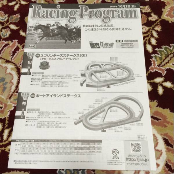 JRAレーシングプログラム2016年10月2日(日)スプリンターズステークス(G1)、ポートアイランドステークスになります。タイトルは、軌跡はまさに疾風迅雷、この速さが未知なる世界を見せる。です。第4回中山第8日、11Rスプリンターズステークス(G1)(グローバルスプリントチャレンジ)。第4回阪神第8日、11Rポートアイランドステークス。です。あと、凱旋門賞(G1)の特集が中にあります。ページ数は、24ページです。完璧を求める方、神経質な方の入札お断り×多少のキズや汚れ等でクレームを出す方も×一度は人の手に渡った物としてご理解ご了承くださいませ!安いものなんで、返品は不可でお願いします!